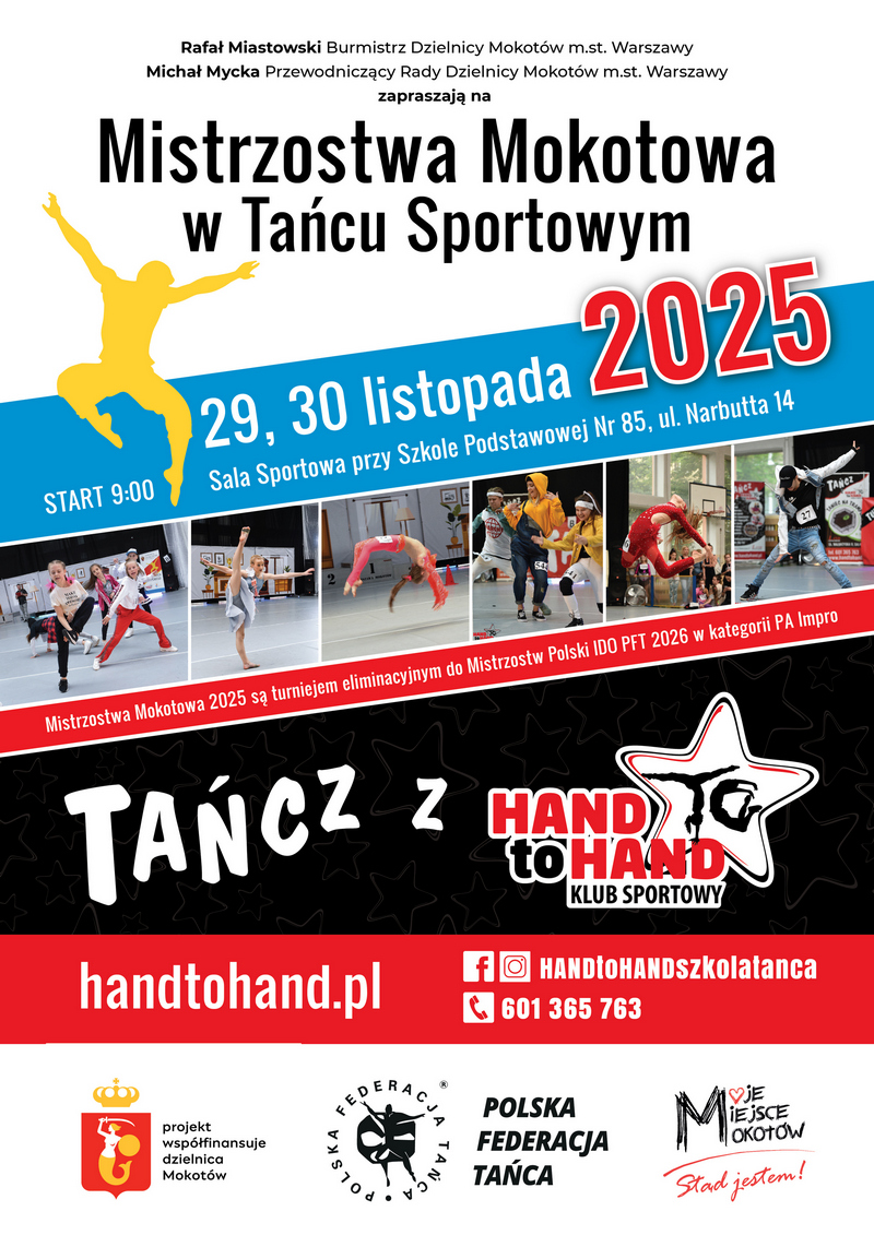 → 7 listopada 2025 r. (piątek), dla tancerzy HAND to HAND poprzez FORMULARZ ZGŁOSZENIA